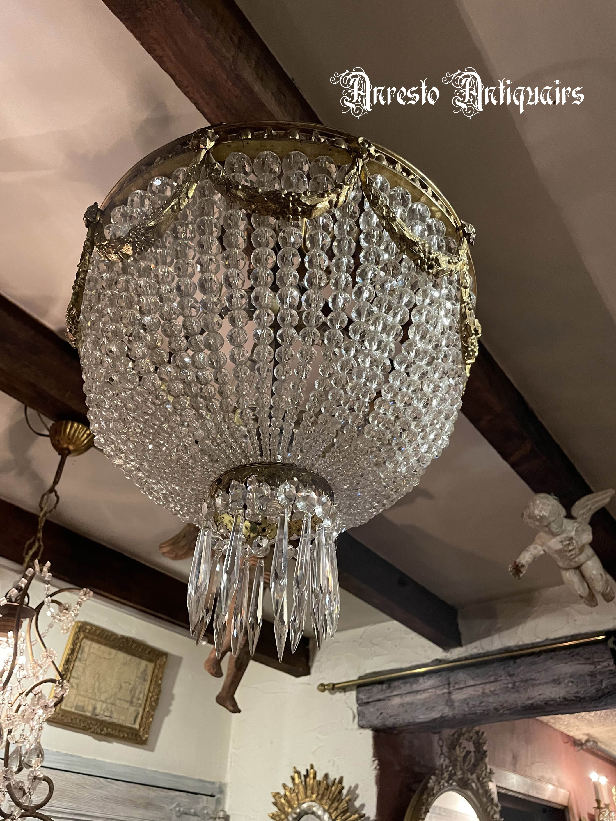 Prod.nr5 Antieke Franse plafonnière in Louis XVI-stijl met guirlandes.