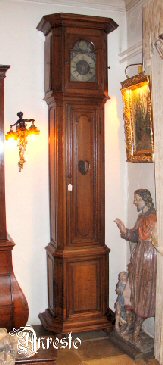 18e eeuwse staanklok, Luikse herkomst, eikenhout. Stijl Louis XIV. Gesigneerd uurwerk