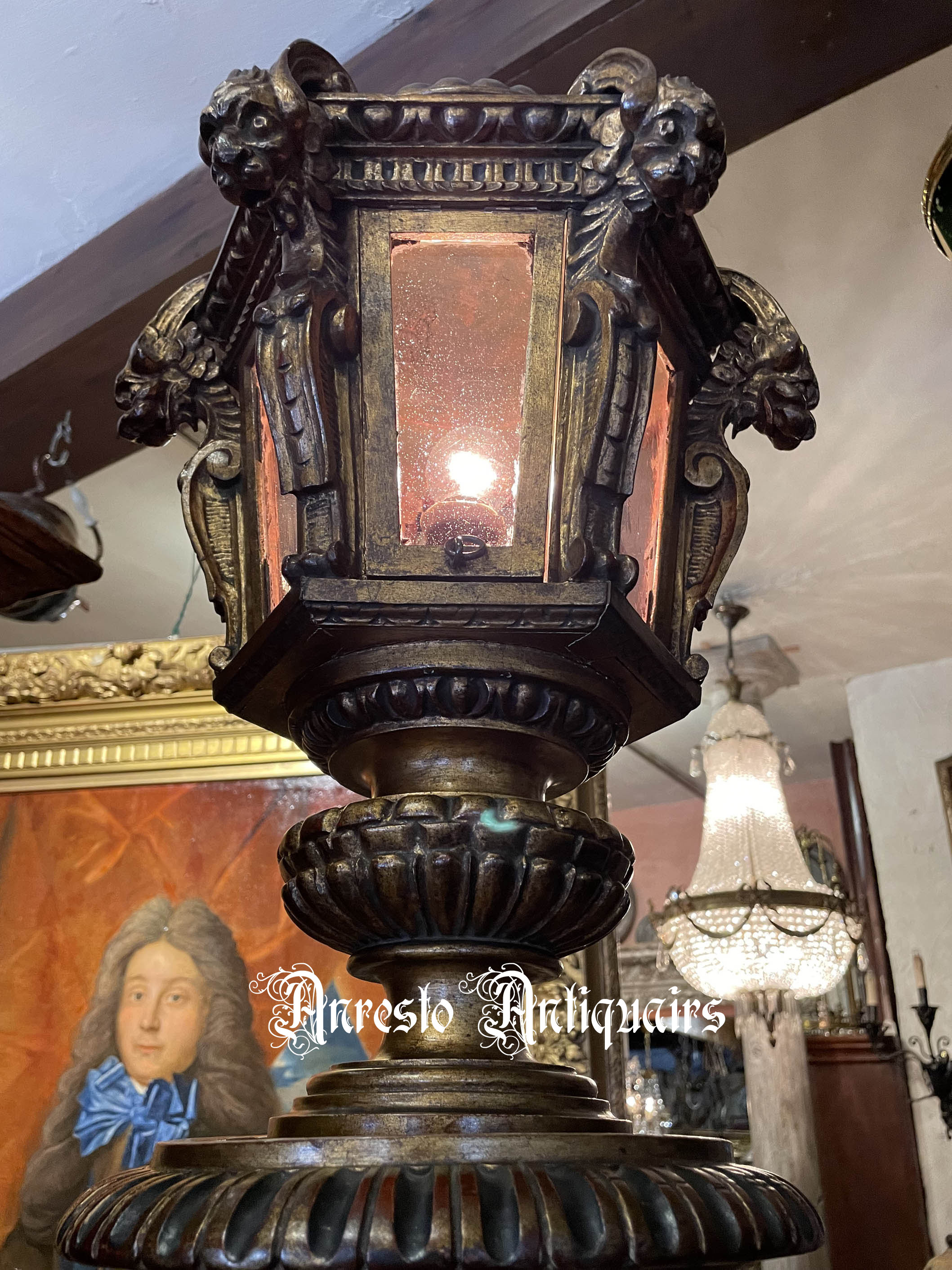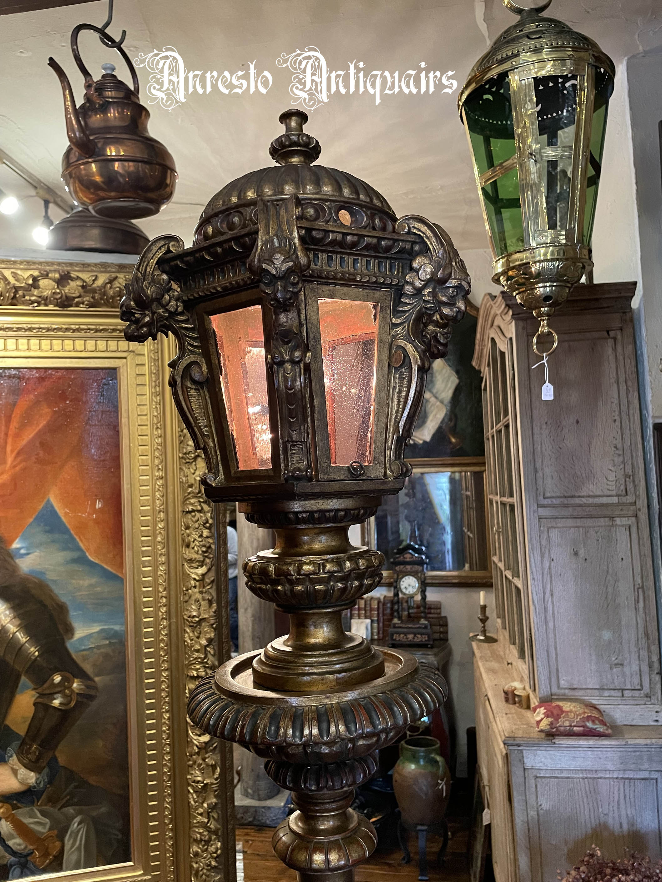 45. Oude Venetiaanse lantaarn. Neorenaissance stijl. Afgewerkt met bladgoud. 20ste eeuw +/-1930. Afmetingen: hoogte: 2m / diameter kap: 35 cm. Oude Venetiaanse lantaarn pinterest. Oude Italiaanse lantaarn. Old Venetian lantern. Vieille lanterne venitienne. Alte venezianische Laterne.