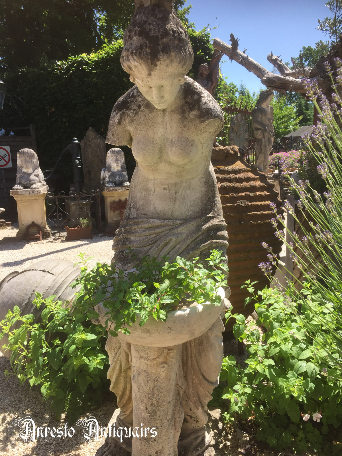 29. ROMEINSE WASSENDE VROUW Antiek beeld, Romeinse wassende vrouw. In kalkzandsteen. 18de eeuws. Afmetingen: Hoogte: 1,60 m / Breedte: 44 cm.