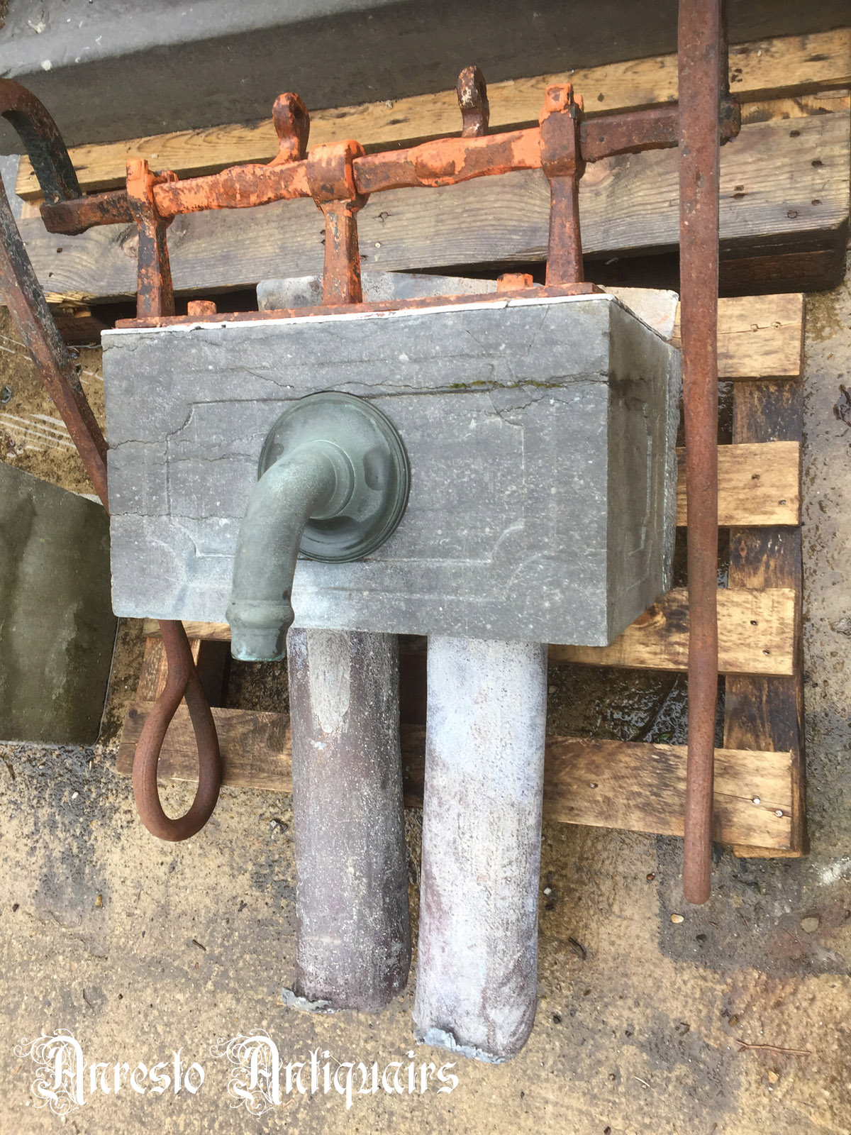 39. - Exclusieve blauwstenen waterbak met uitloop. 19de eeuws, +/- 1820. Luikse herkomst.