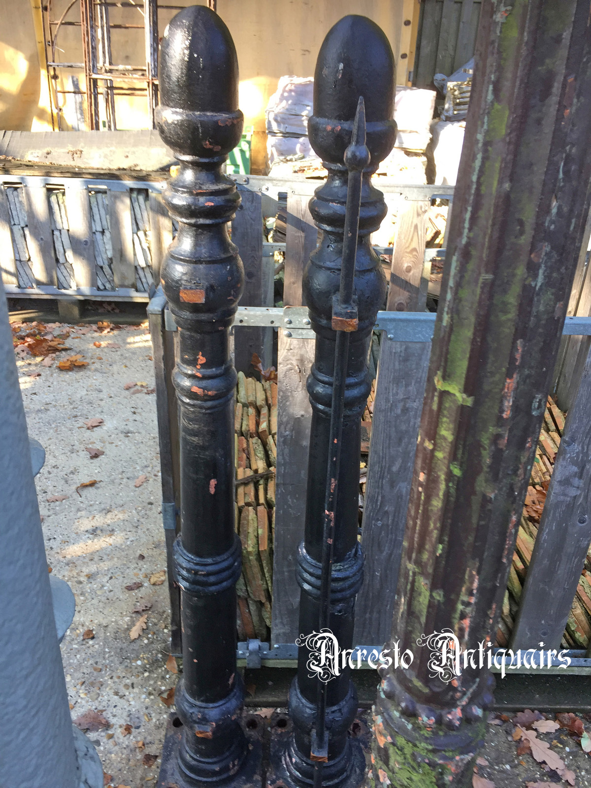 82. - Stel oude gietijzeren zuilen. Periode: +/- 1900. Afmetingen: hoogte: 1,40 m / dikte: 10 cm.