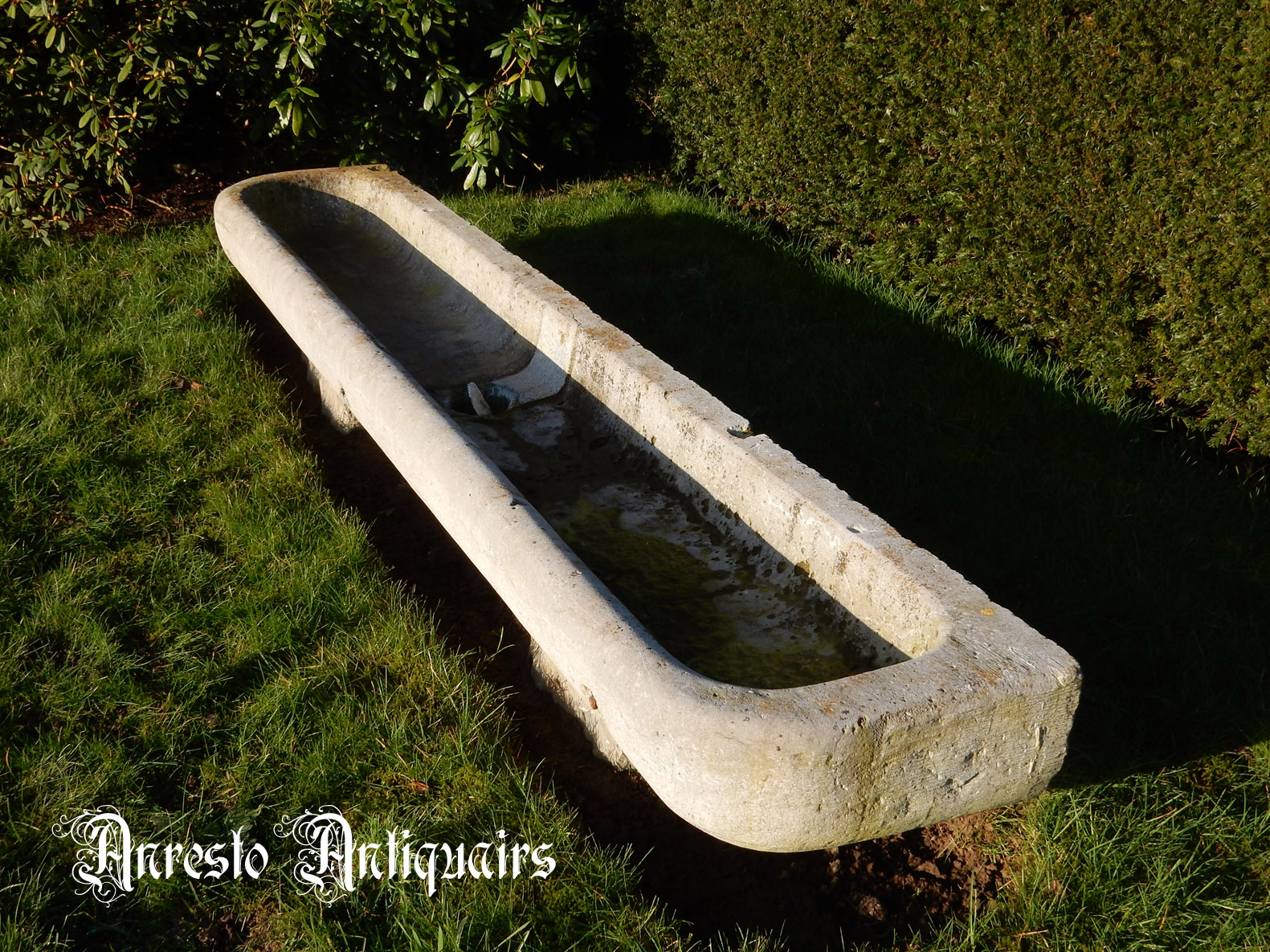 87. - Antieke blauwstenen voederbak. Begin 18de eeuw. West-Vlaamse herkomst. Afmetingen: lengte: 2,80m / hoogte: 20 cm / breedte: 50 cm.