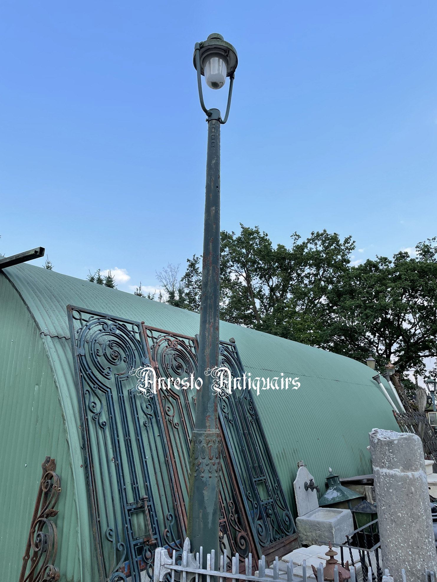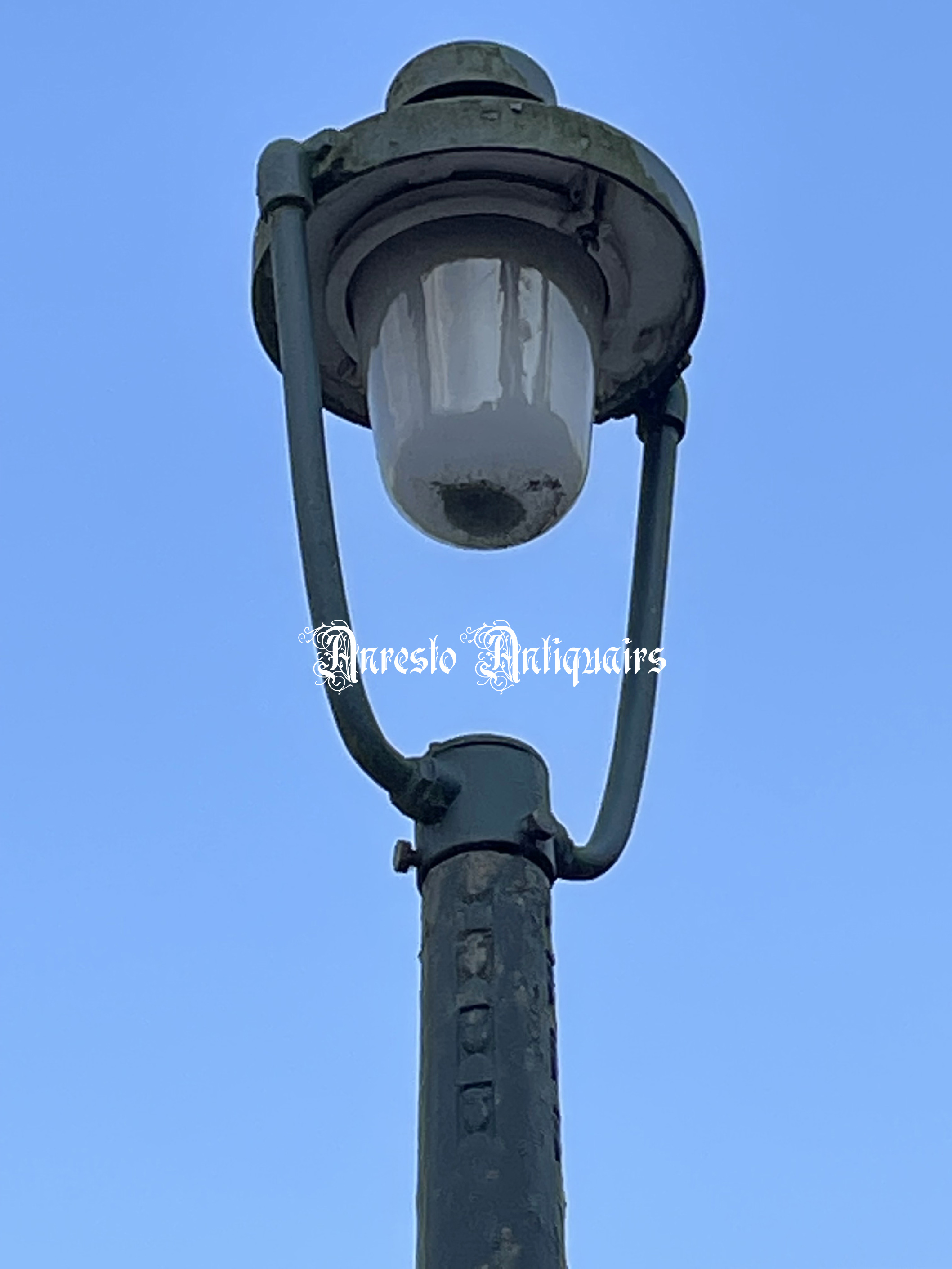 Art Deco lantaarnpaal uit gietijzer met originele kap.