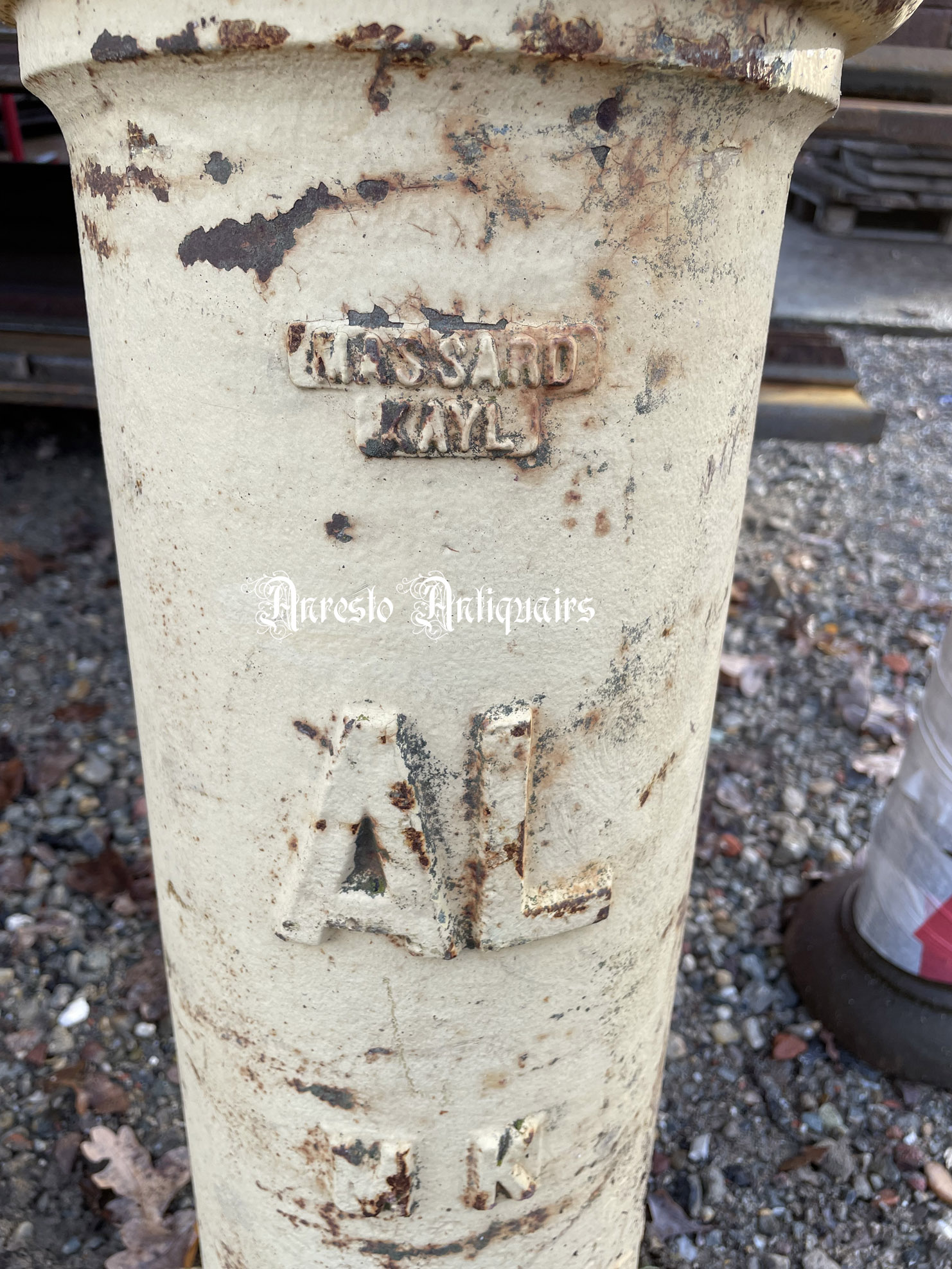 Antieke grote Luxemburgse gietijzeren lantaarnpalen.