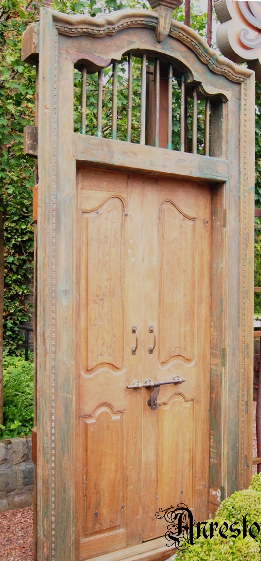 Kolonialistische dubbele buitendeur met bovenlicht.