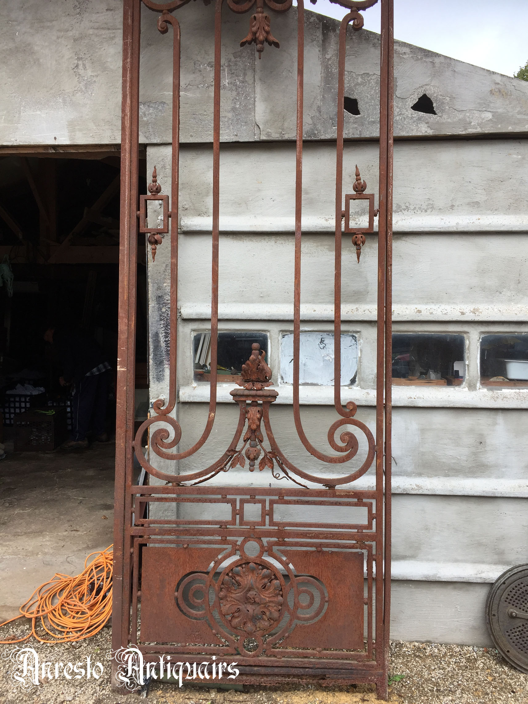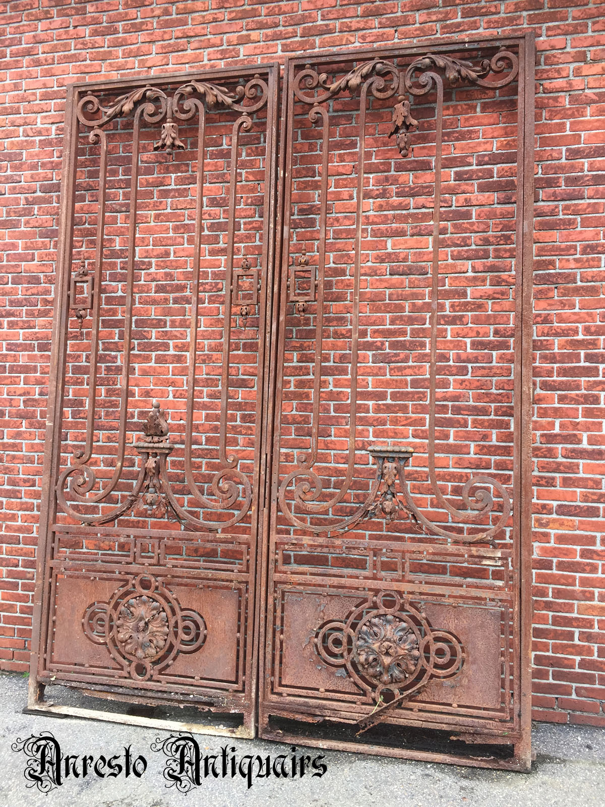Antieke dubbele smeedijzeren portaaldeuren. Napoleon III stijl. 19de eeuws, +/- 1830 – 1850. Luikse herkomst. Afmetingen: hoogte: 3,10 m / breedte: 2,30 m.