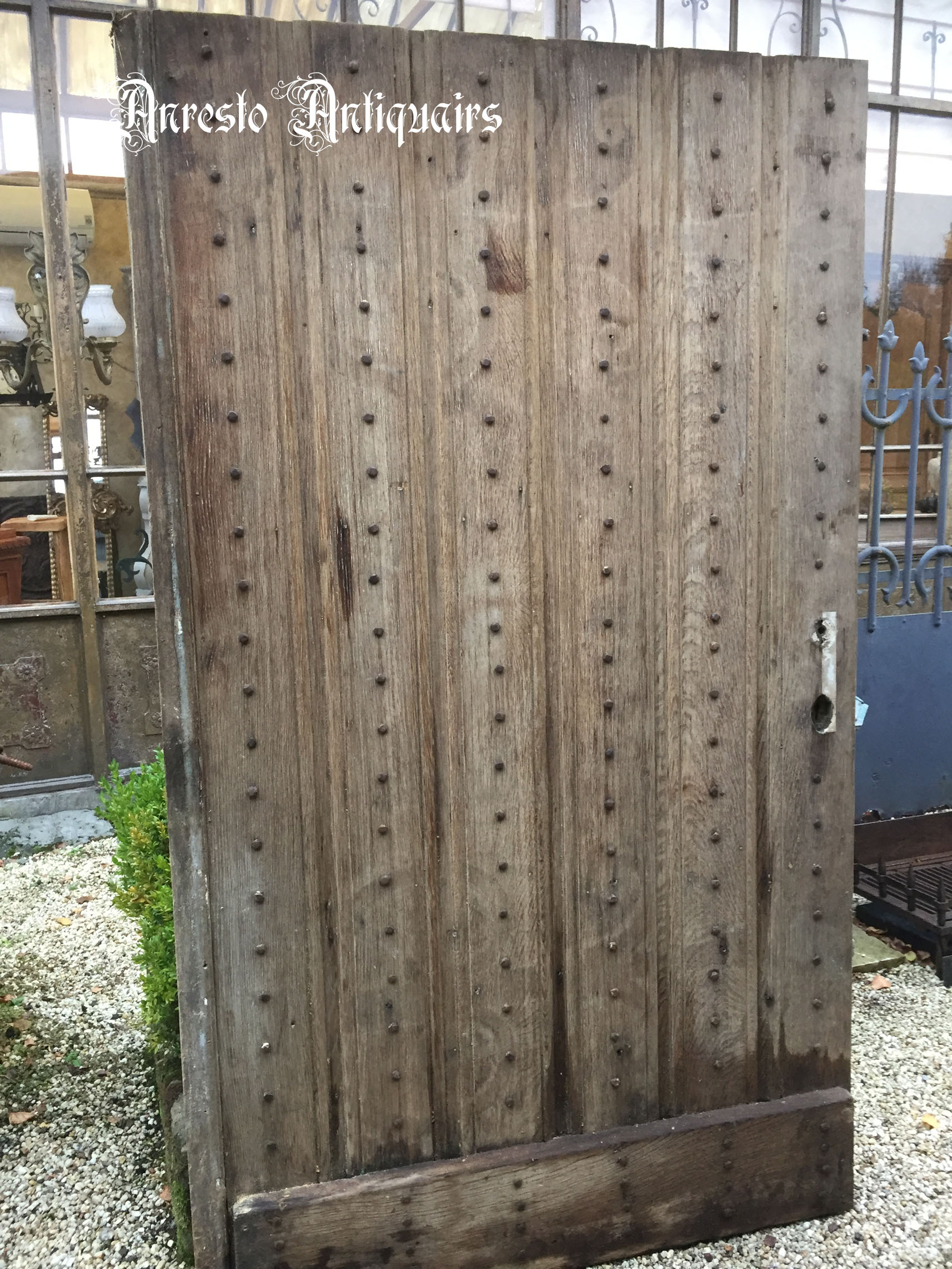 Antieke benagelde landelijke buitendeur. Renaissance stijl. Vervaardigd uit eikenhout. Perfecte staat. 18de eeuws +/- 1780. Ardeense herkomst. Afmetingen: hoogte: 1,95 m (aanpasbaar) / breedte: 1,13 m.