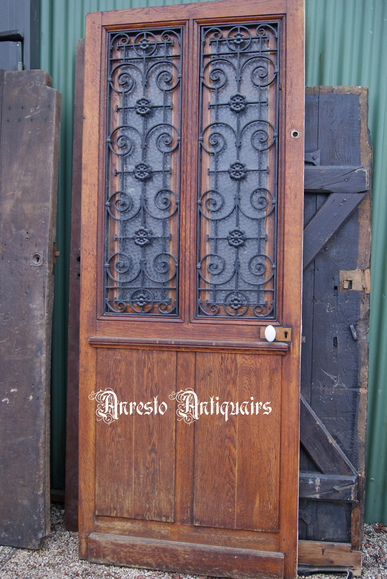 Antieke Ardeense eikenhouten buitendeur. Met sierlijk hekwerk. Prima staat. 19de eeuw, +/- 1880. Hoogte: 2,25 m / breedte: 88 cm. Antieke eikenhouten inkomdeur. Antique oak entrance door. Antique oak front door. Porte d'entree antique en chene. Antike Eingangstür aus Eichenholz.