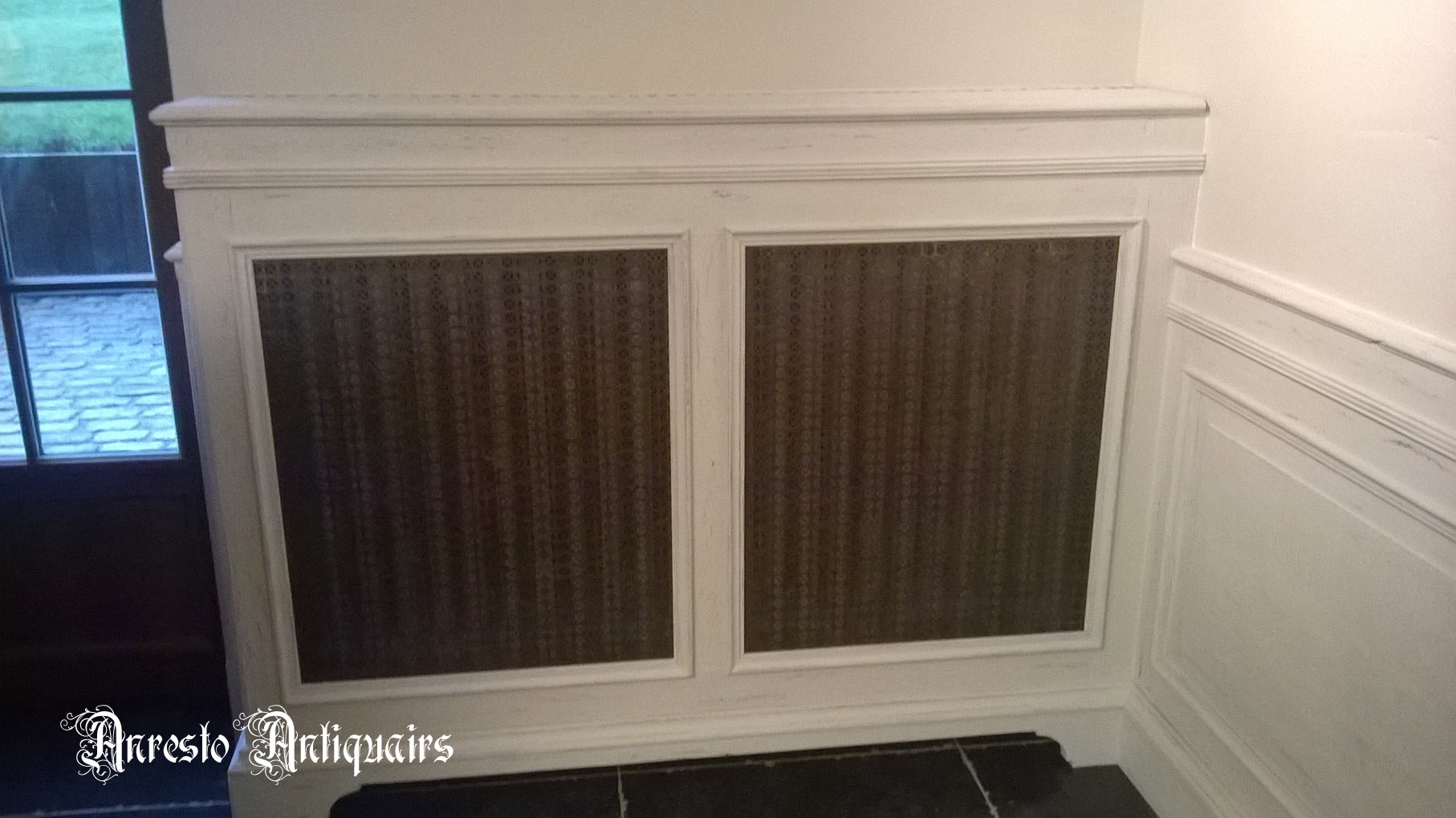 Exclusieve radiatorafkasting. Geintegreerde radiatoromkasting. Wordt op uw maatvoering vervaardig uit massief hout. Handmatig gepatineerd in de kleur naar keuze.