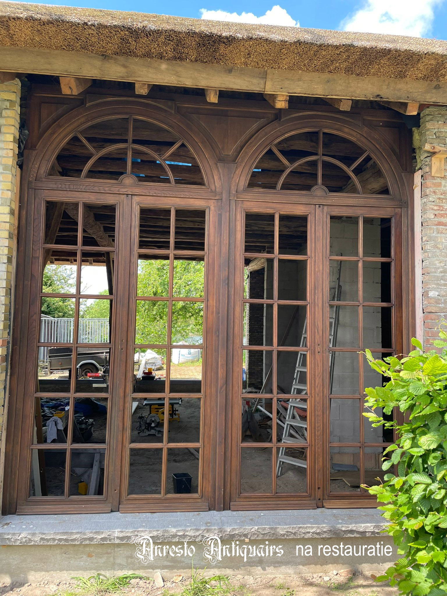 6. Gerealiseerd project. Inbouwen van 22de eeuwse eikenhouten raampartijen in landelijke hoeve. Restauratie en afwerking door Anresto. Antieke eikenhouten ramen pinterest Anresto. Antique oak windows. Fenetres antiques en chene. Antike Fenster aus Eichenholz.