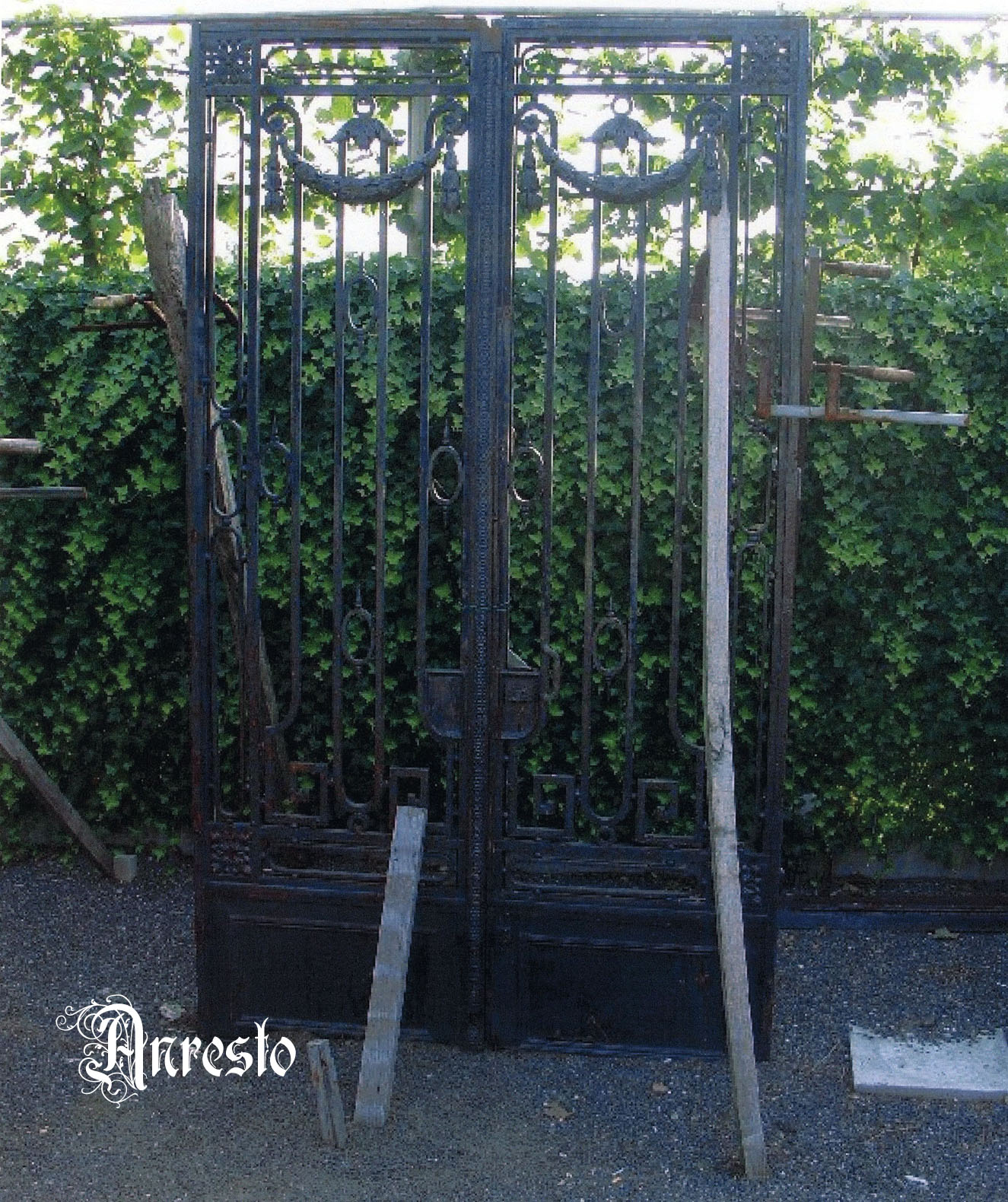 Smeedijzeren dubbele deuren.
