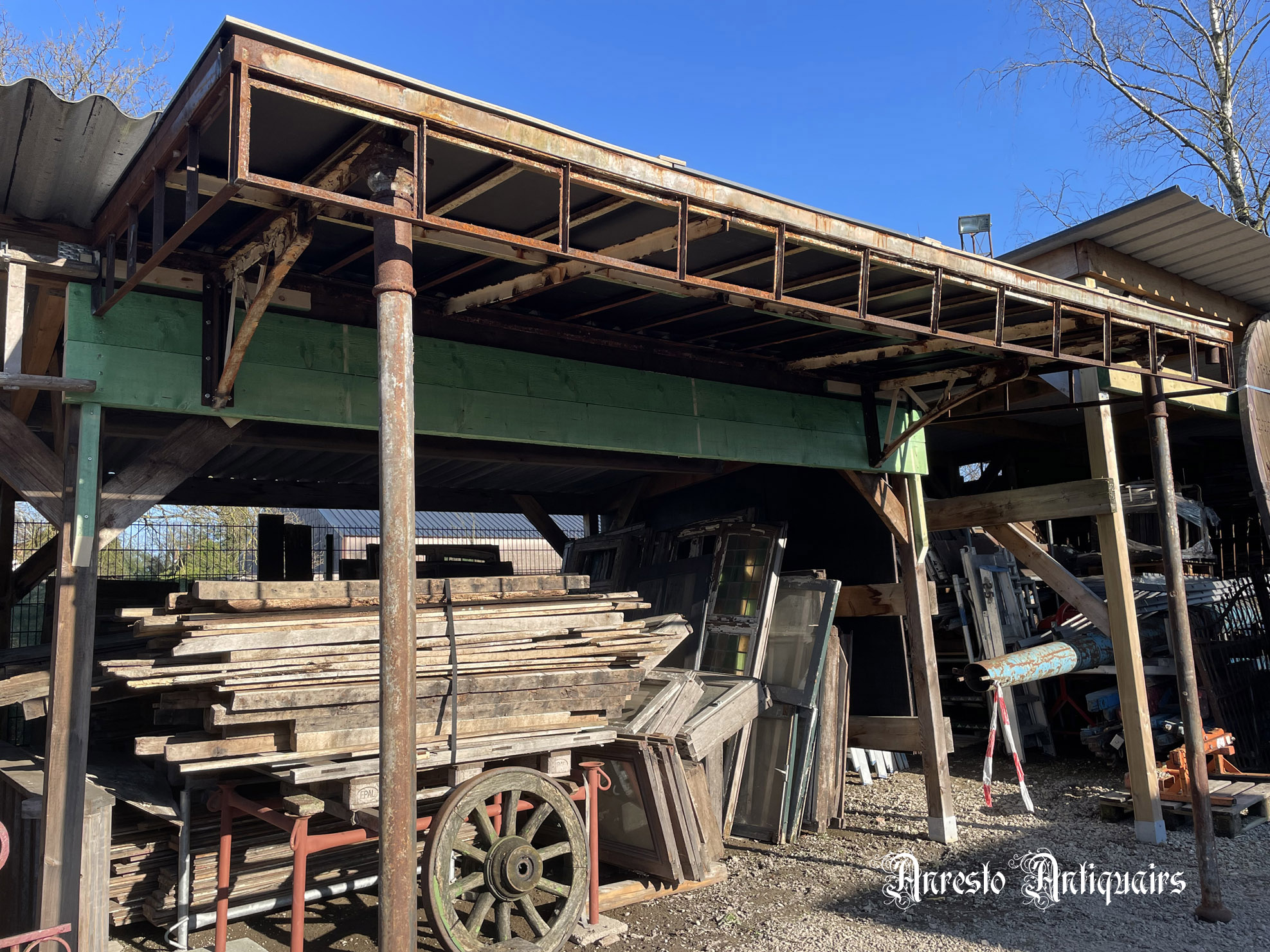 Voorbeelden uit de antieke serres, smeedijzeren raampartijen, orangeries, prieelen, afdaken etc. bij Antiek Anresto in Lommel